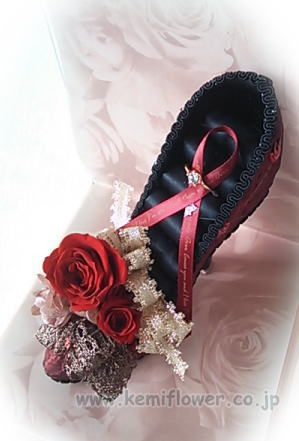 高さが13センチ程です。プリザーブドはローズの赤系。